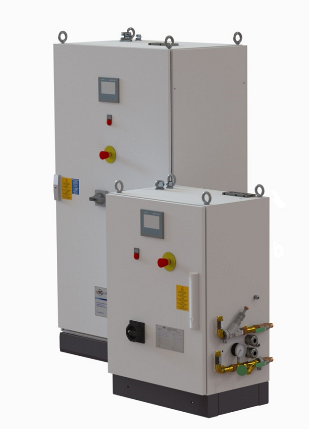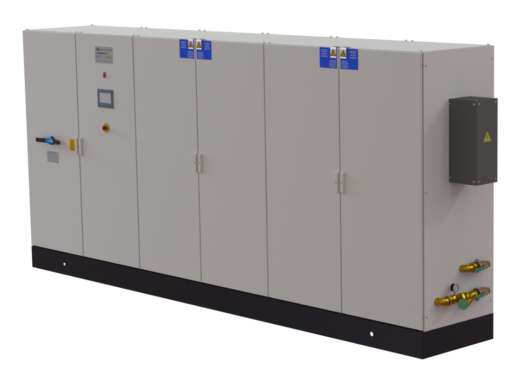 Der Mittelfrequenz-Umrichter ist mit IGBT-Technologie ausgestattet, die Arbeitsfrequenzen von 50 Hz bis 100 kHz und hin bis zu mehreren Tausend Kilowatt erlaubt. Durch eine spezielle Synchronisierungseinheit können mehrere Umrichter an einer Last betrieben werden. Ihre Leistung lässt sich unabhängig voneinander individuell regeln. Damit lassen sich unterschiedliche Temperaturzonen auf einem Werkstück realisieren.